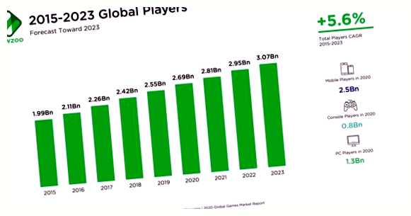 Прогнозируется, что число геймеров в мире будет продолжать расти. В 2020 году ожидается, что их количество достигнет 2,7 миллиарда человек, а к 2023 году это число увеличится до 2,9 миллиарда. Это обусловлено как ростом доступности игровых платформ, так и увеличением интереса к видеоиграм во всем мире.